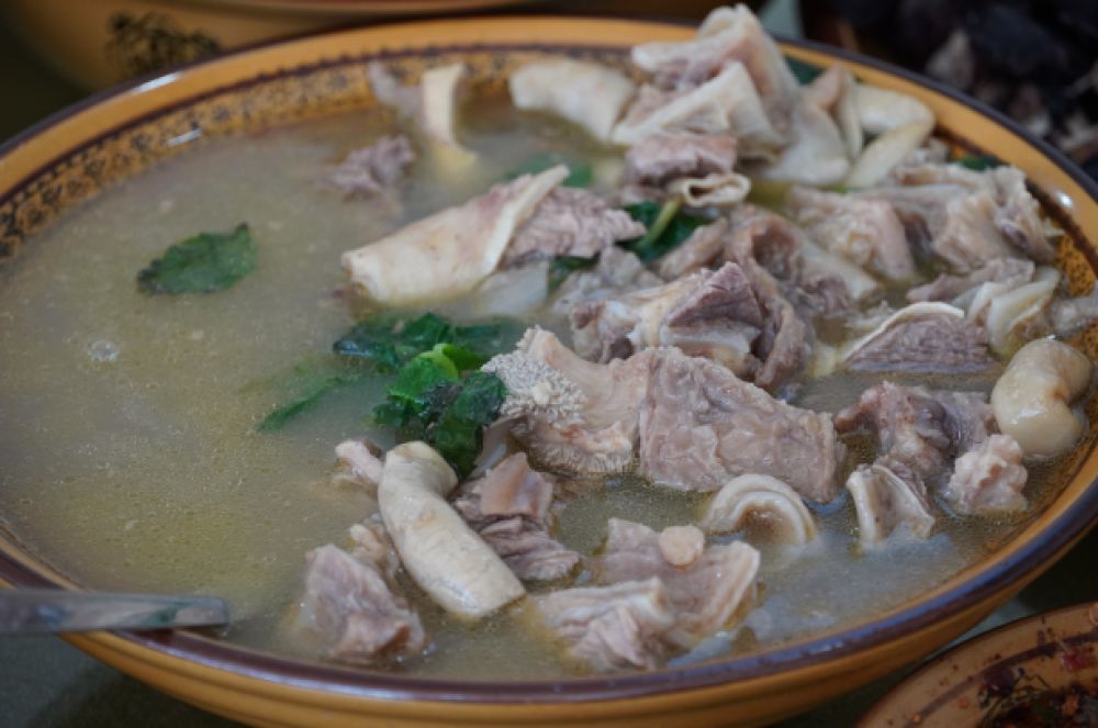 將牛的排骨、肝、脾、腸、肚等部位處理干凈后,放入大鍋加清湯燉煮數(shù)小時(shí),直至軟爛即可食用。這道菜的關(guān)鍵在燉煮的火候,以及食用時(shí)搭配的配料與湯料,用最樸素自然的烹飪方式,呈現(xiàn)食材最淳樸的鮮美。