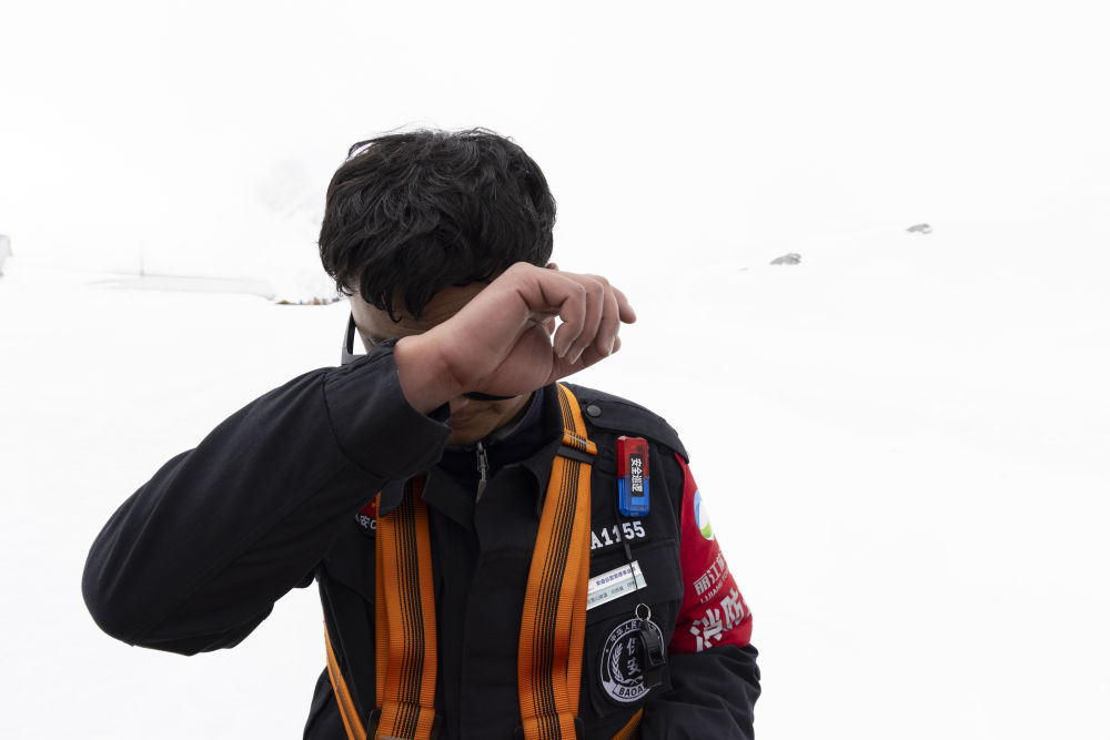“蜘蛛人”負(fù)責(zé)清理掉落在懸崖峭壁的垃圾,環(huán)衛(wèi)工和德軍和他的同事則負(fù)責(zé)景區(qū)的日常保潔。他們使用垃圾鉗、垃圾袋等工具收集雪地里的氧氣瓶等垃圾,打包后運(yùn)到山下,以確保景區(qū)的干凈整潔。