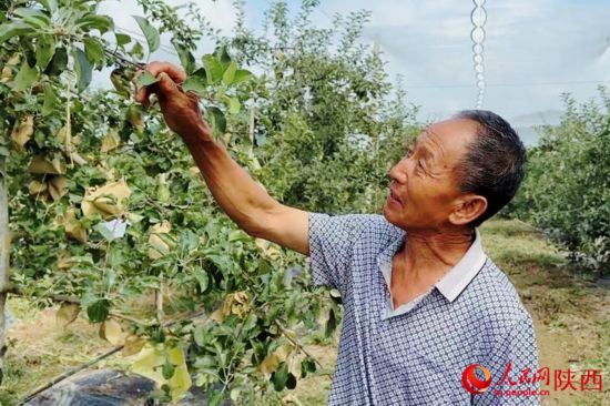南溝村村民趙永東在果園里。 人民網(wǎng) 白鴿攝