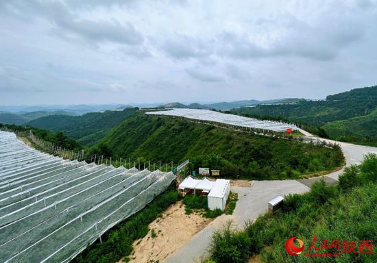 櫻桃園和蘋果園內(nèi)架滿防雹網(wǎng),有效提高了果樹抵抗自然災(zāi)害風(fēng)險(xiǎn)的能力。 人民網(wǎng) 白鴿攝