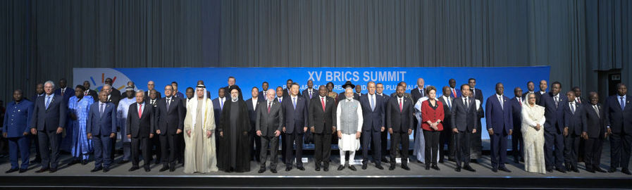 會(huì)議由南非總統(tǒng)拉馬福薩主持,巴西總統(tǒng)盧拉、印度總理莫迪、俄羅斯總統(tǒng)普京(線上)和60多位非洲國家及其他新興市場和發(fā)展中國家領(lǐng)導(dǎo)人或代表,以及聯(lián)合國秘書長古特雷斯、新開發(fā)銀行行長羅塞夫等國際和地區(qū)組織負(fù)責(zé)人出席。這是與會(huì)領(lǐng)導(dǎo)人集體合影。新華社記者 李學(xué)仁 攝