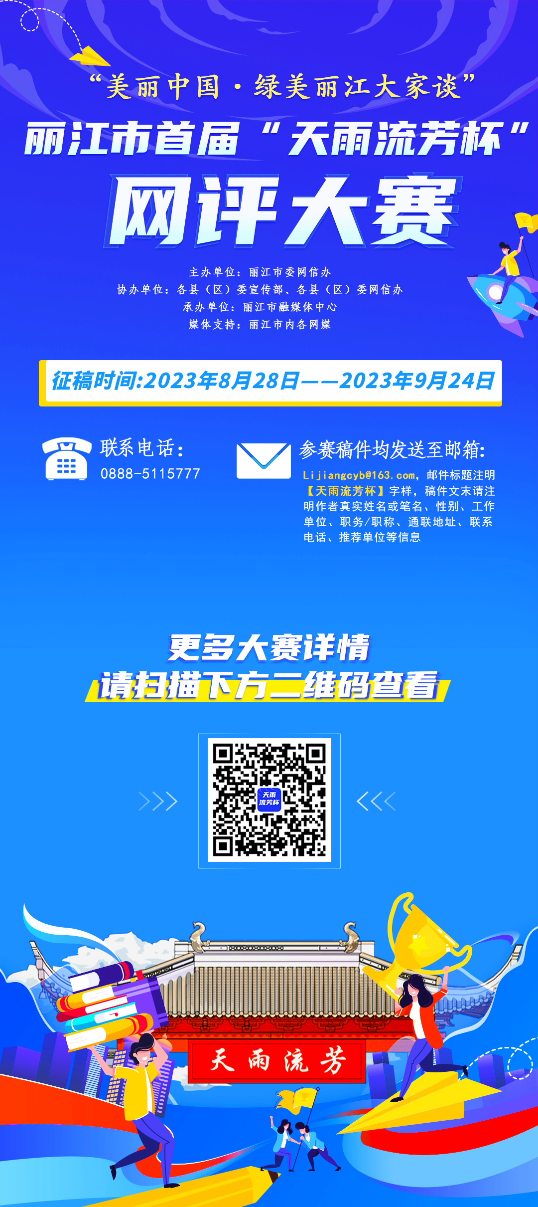 所登載的所有文章僅代表作者個(gè)人觀點(diǎn),與本網(wǎng)站立場(chǎng)無(wú)關(guān)。歡迎關(guān)注麗江市首屆“天雨流芳杯”網(wǎng)評(píng)大賽,投稿郵箱Lijiangcyb@163.com。