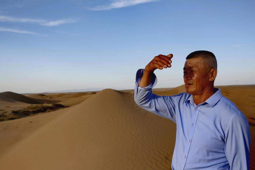 烏日根達(dá)來(lái)還是個(gè)精壯小伙時(shí),在妻子支持下,賣掉家里的山羊換回2萬(wàn)元,正式開(kāi)始植樹治沙。