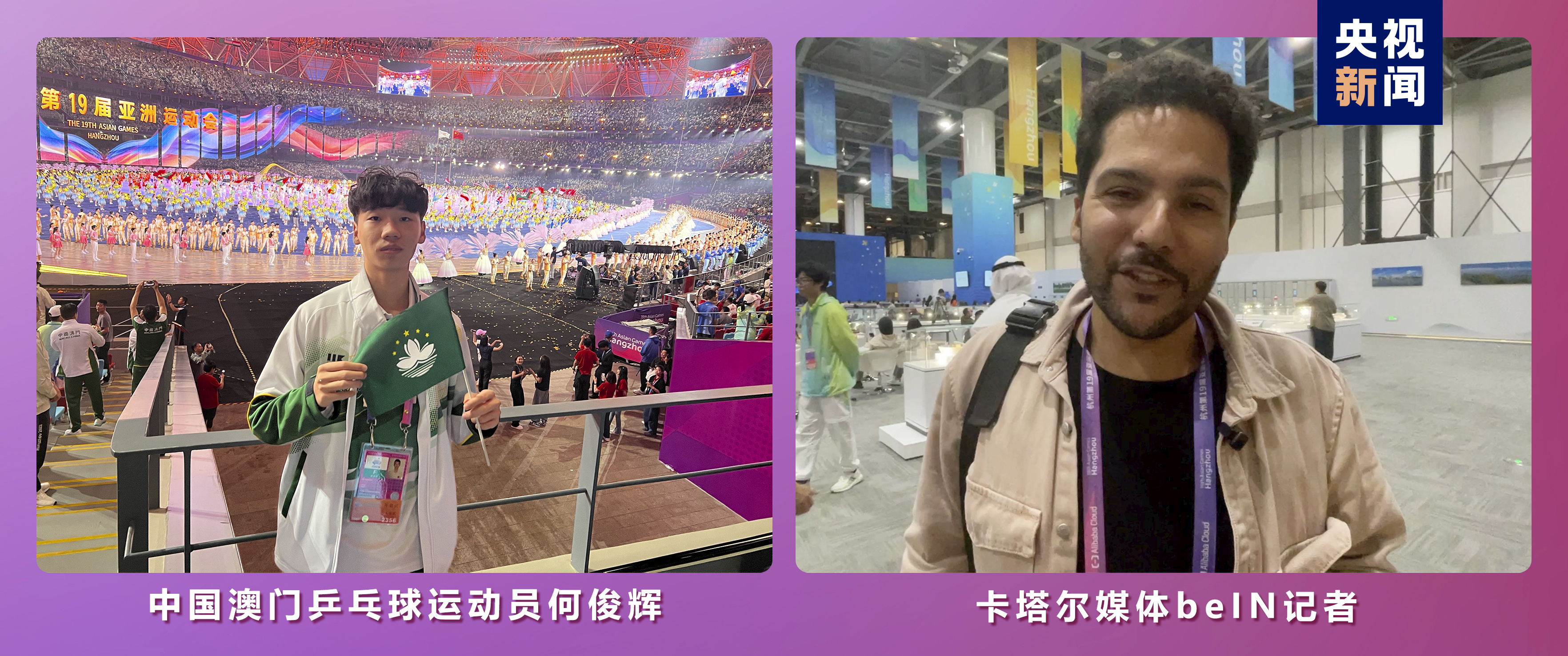 中國澳門乒乓球運動員何俊輝說,這次亞運會開幕式好精彩,節(jié)目表演和點火炬的場面非常震撼,特別是我們中國澳門代表團入場時,現(xiàn)場的觀眾都很支持我們,特別開心!