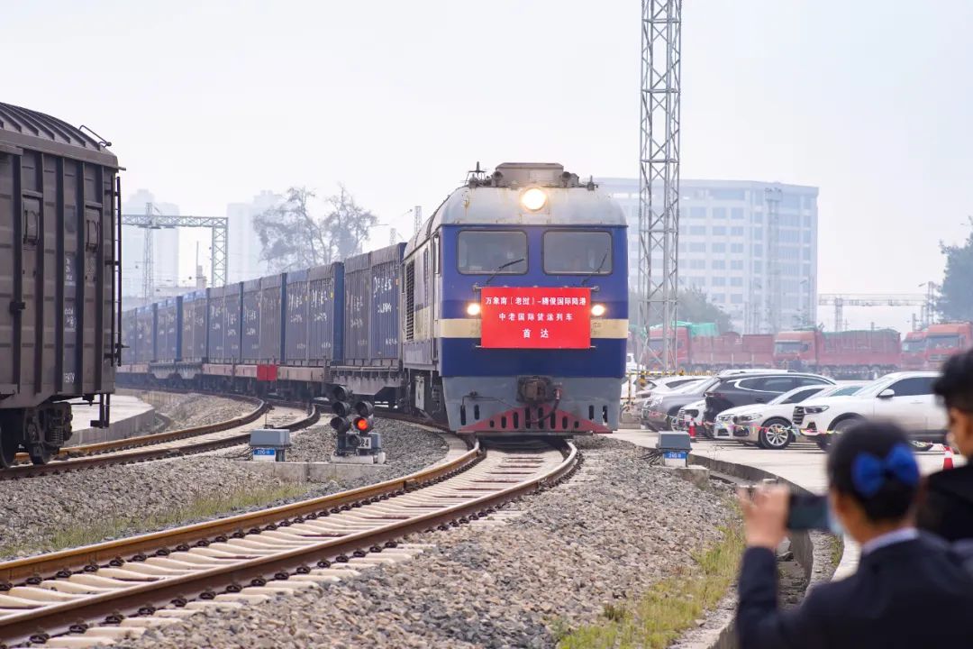 2021年12月21日,從老撾萬象南站發(fā)運至騰俊國際陸港的首班中老國際貨運列車順利到達。
