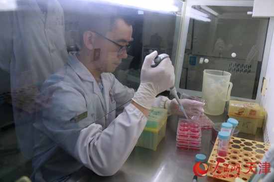 程曲漢進(jìn)行細(xì)胞培養(yǎng)與傳代實(shí)驗(yàn)。 人民網(wǎng)記者 張靜淇攝