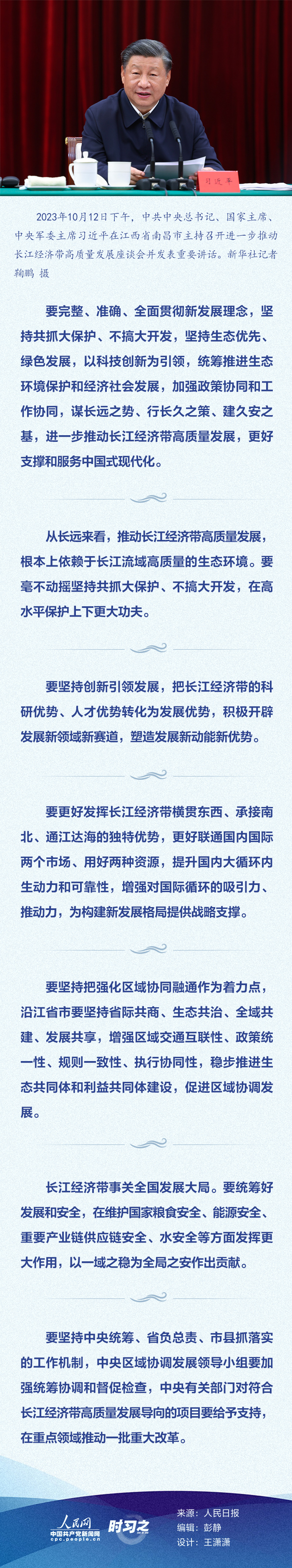 中共中央總書記、國(guó)家主席、中央軍委主席習(xí)近平10月12日下午在江西省南昌市主持召開進(jìn)一步推動(dòng)長(zhǎng)江經(jīng)濟(jì)帶高質(zhì)量發(fā)展座談會(huì)并發(fā)表重要講話。座談會(huì)上,為進(jìn)一步推動(dòng)長(zhǎng)江經(jīng)濟(jì)帶高質(zhì)量發(fā)展,更好支撐和服務(wù)中國(guó)式現(xiàn)代化,總書記提出要求。