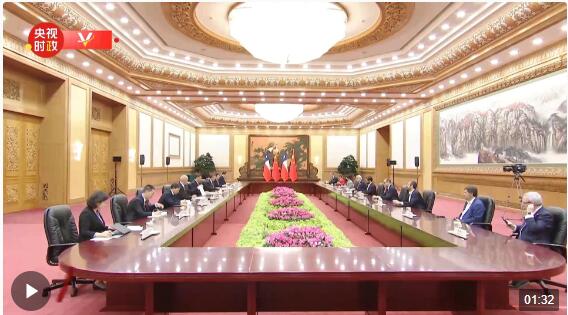 10月17日上午,國家主席習(xí)近平在人民大會堂同來華出席第三屆“一帶一路”國際合作高峰論壇并進(jìn)行國事訪問的智利總統(tǒng)博里奇舉行會談。