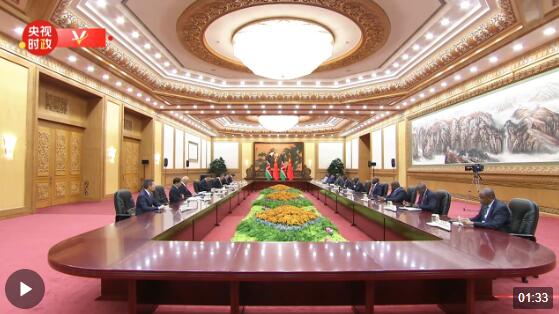 10月18日晚,國家主席習近平在人民大會堂會見來華出席第三屆“一帶一路”國際合作高峰論壇的肯尼亞總統(tǒng)魯托。