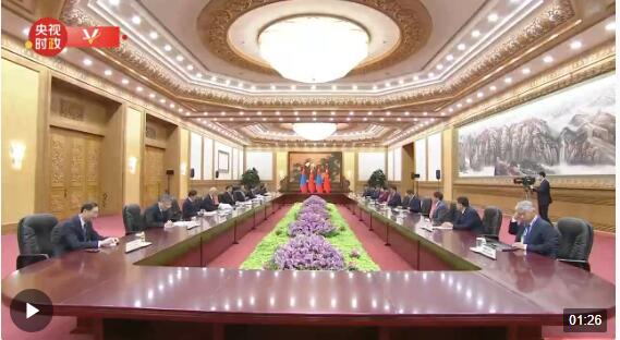 10月19日上午,國(guó)家主席習(xí)近平在人民大會(huì)堂會(huì)見(jiàn)來(lái)華出席第三屆“一帶一路”國(guó)際合作高峰論壇的蒙古國(guó)總統(tǒng)呼日勒蘇赫。