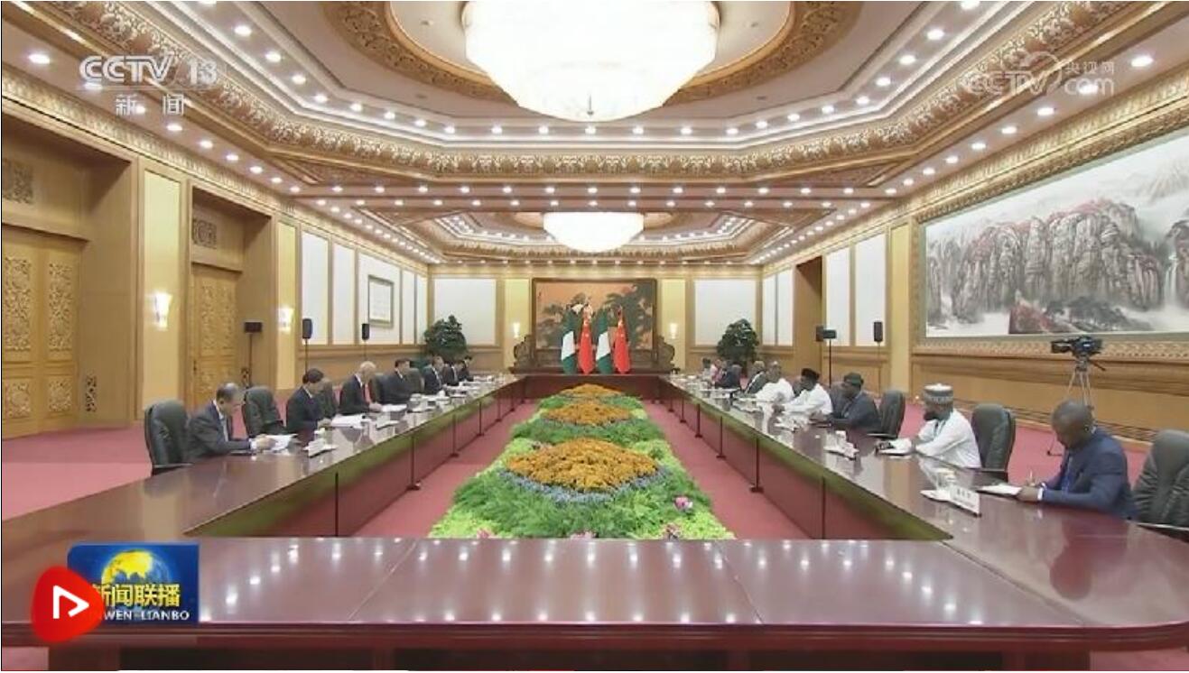 10月18日下午,國家主席習(xí)近平在人民大會堂會見來華出席第三屆“一帶一路”國際合作高峰論壇的尼日利亞副總統(tǒng)謝蒂馬。