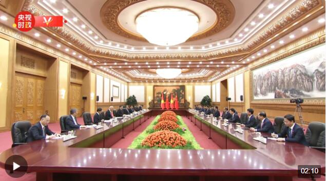 10月20日上午,國家主席習近平在人民大會堂會見來華出席第三屆“一帶一路”國際合作高峰論壇的越南國家主席武文賞。
