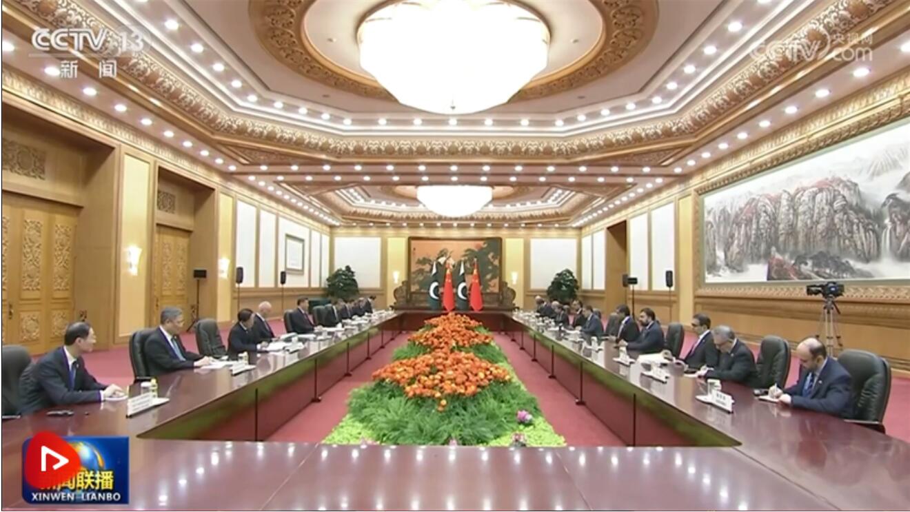 10月19日晚,國家主席習(xí)近平在人民大會堂會見來華出席第三屆“一帶一路”國際合作高峰論壇的巴基斯坦總理卡卡爾。