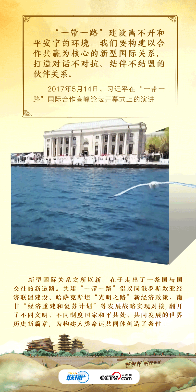 聯(lián)播+“古絲綢之路綿亙?nèi)f里、延續(xù)千年,積淀了以和平合作、開放包容、互學互鑒、互利共贏為核心的絲路精神?!?017年,習近平主席在首屆“一帶一路”國際合作高峰論壇開幕式上系統(tǒng)闡述了絲路精神的內(nèi)涵,倡議將“一帶一路”建成和平之路。