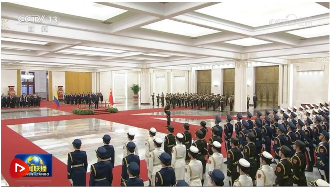 國家主席習(xí)近平25日下午在人民大會(huì)堂北大廳舉行儀式,歡迎哥倫比亞共和國總統(tǒng)古斯塔沃·佩特羅·烏雷戈對(duì)我國進(jìn)行國事訪問。