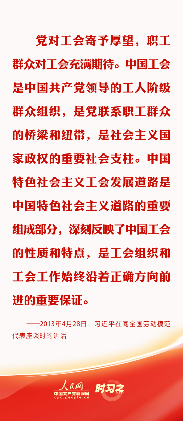 來源:人民日?qǐng)?bào)、《習(xí)近平關(guān)于工人階級(jí)和工會(huì)工作論述摘編》