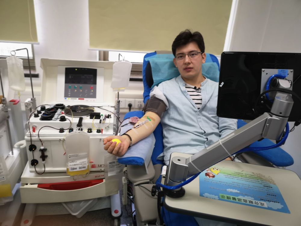 2018年5月22日,哈薩克斯坦青年魯斯蘭在北京市紅十字血液研究所獻血。在中國留學(xué)期間,血型為RH陰性血的他多次無償獻血,被人們親切稱作“熊貓俠”。