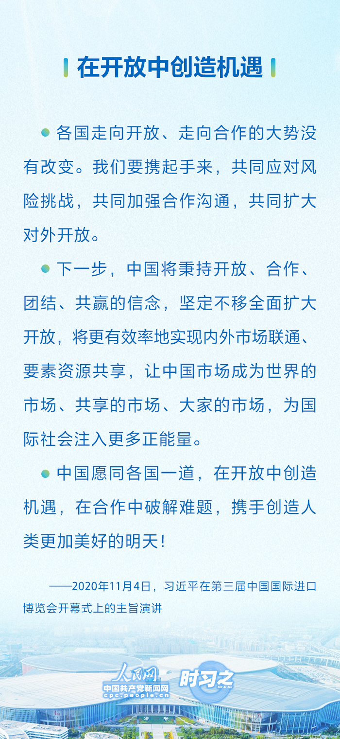 自首屆以來,國家主席習近平連續(xù)五屆出席進博會開幕式并發(fā)表重要講話,宣布中國重大開放舉措,展示中國堅定開放決心。