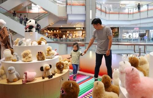 2023年11月2日,顧客在溫暖駝品牌專柜內(nèi)選購(gòu)。連續(xù)六年參加進(jìn)博會(huì)的秘魯羊駝制品品牌溫暖駝在上海市中心商場(chǎng)開設(shè)了專柜。新華社記者 方喆 攝