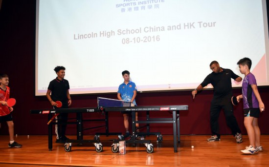 2016年10月8日,香港乒乓球運動員與林肯中學學生進行交流比賽。
