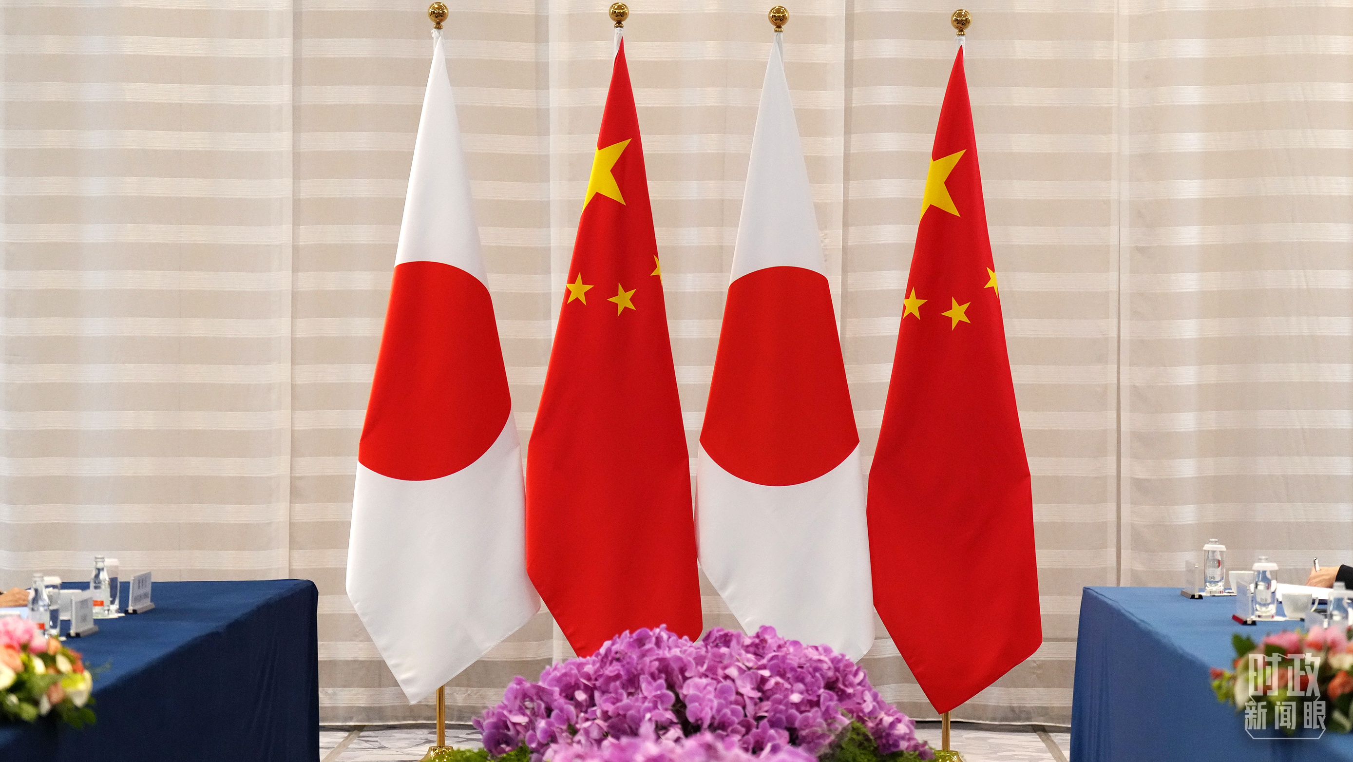 △會(huì)談現(xiàn)場(chǎng)的中日兩國國旗。(總臺(tái)國廣記者李晉拍攝)