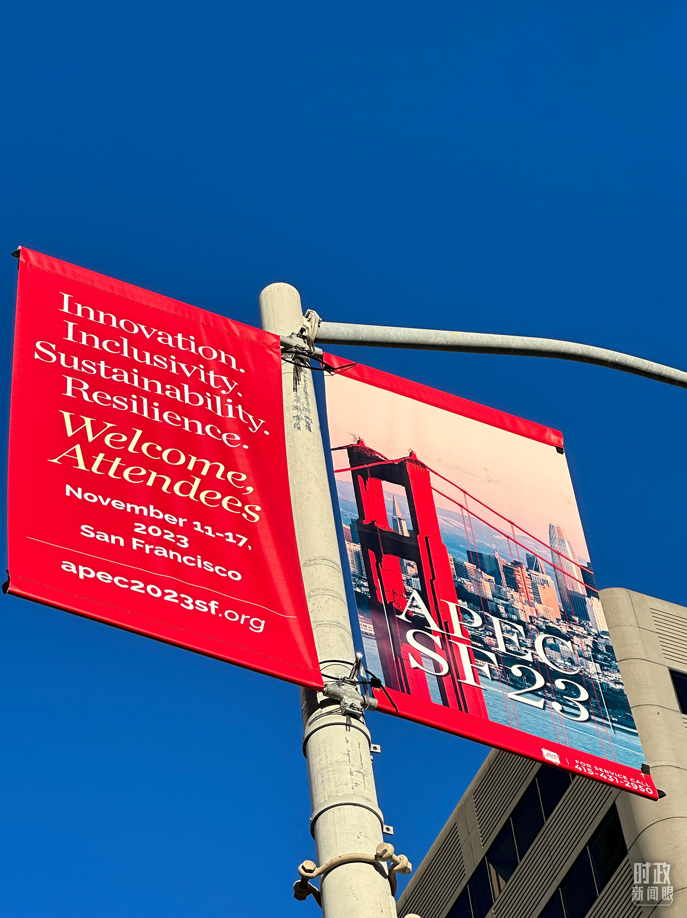 △舊金山街頭,本次APEC會(huì)議宣傳語。(總臺(tái)國廣記者時(shí)冉拍攝)