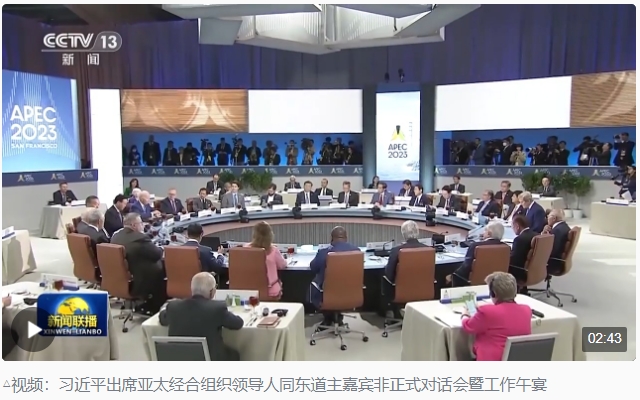 當(dāng)天中午,習(xí)主席在舊金山出席了另一場(chǎng)多邊活動(dòng)——APEC領(lǐng)導(dǎo)人同東道主嘉賓非正式對(duì)話會(huì)暨工作午宴。這場(chǎng)會(huì)議由美國總統(tǒng)拜登主持,議題為“可持續(xù)、氣候和公正能源轉(zhuǎn)型”。