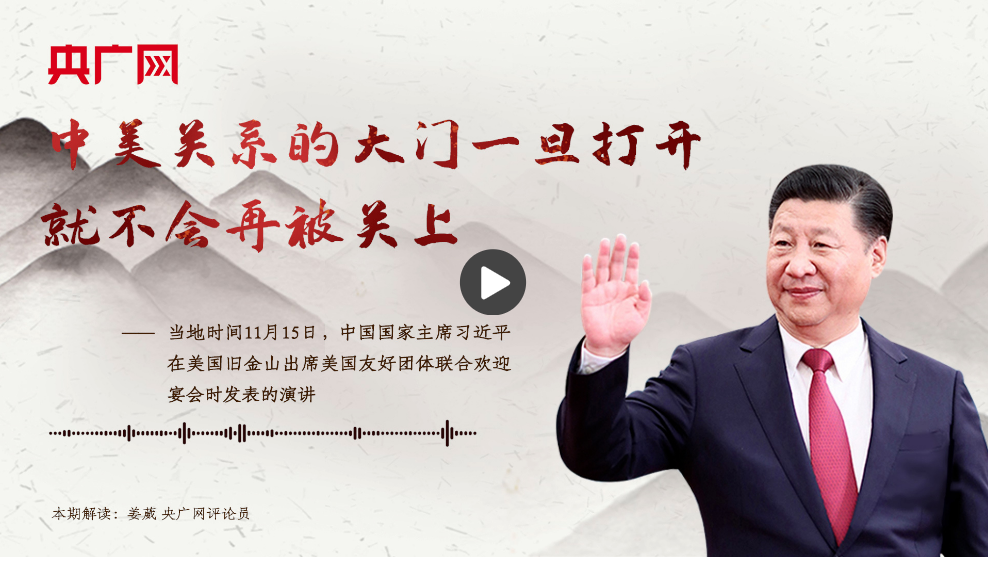 這段話出自當(dāng)?shù)貢r(shí)間11月15日中國(guó)國(guó)家主席習(xí)近平在美國(guó)舊金山出席美國(guó)友好團(tuán)體聯(lián)合歡迎宴會(huì)時(shí)發(fā)表的演講。它深刻闡明了不同時(shí)代推進(jìn)中美友好事業(yè)發(fā)展的力量源泉在于兩國(guó)人民。