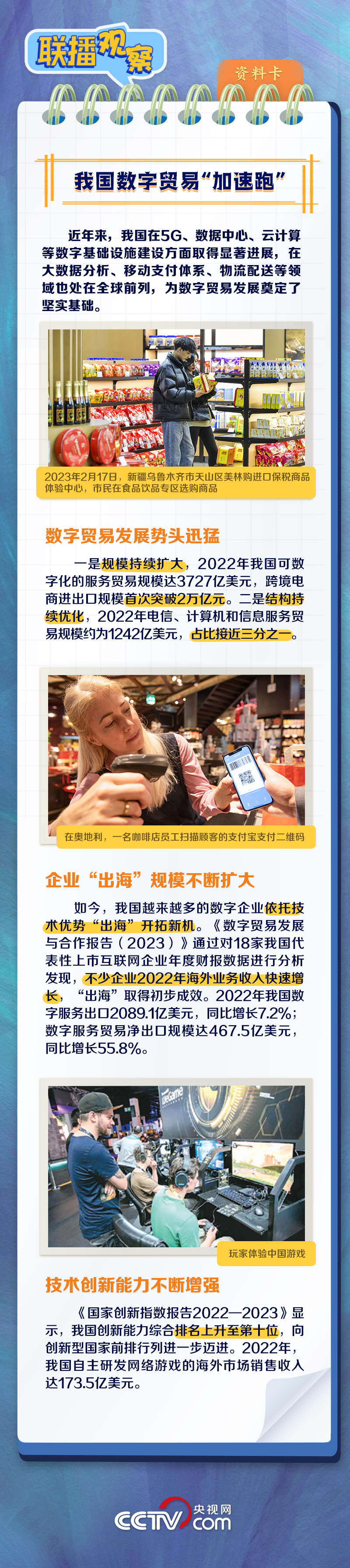 聯(lián)播+“當(dāng)前,全球數(shù)字貿(mào)易蓬勃發(fā)展,成為國際貿(mào)易的新亮點(diǎn)?!?1月23日,習(xí)近平主席向第二屆全球數(shù)字貿(mào)易博覽會致賀信,回顧了近年來中國為全球數(shù)字貿(mào)易蓬勃發(fā)展付出的努力,并對與會各方寄予厚望。