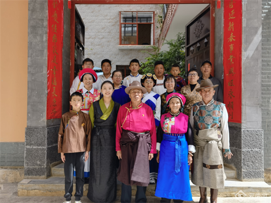 朱合老人家住香格里拉市建塘鎮(zhèn)金龍社區(qū),家中有14位成員,由藏、納西、漢3個民族組成,一家人其樂融融。