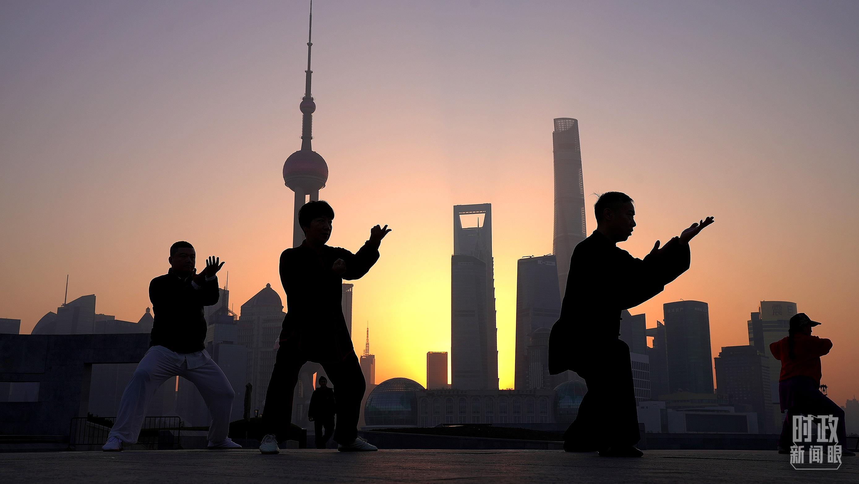 △正在晨練的上海市民。(總臺(tái)央視記者劉琦拍攝)