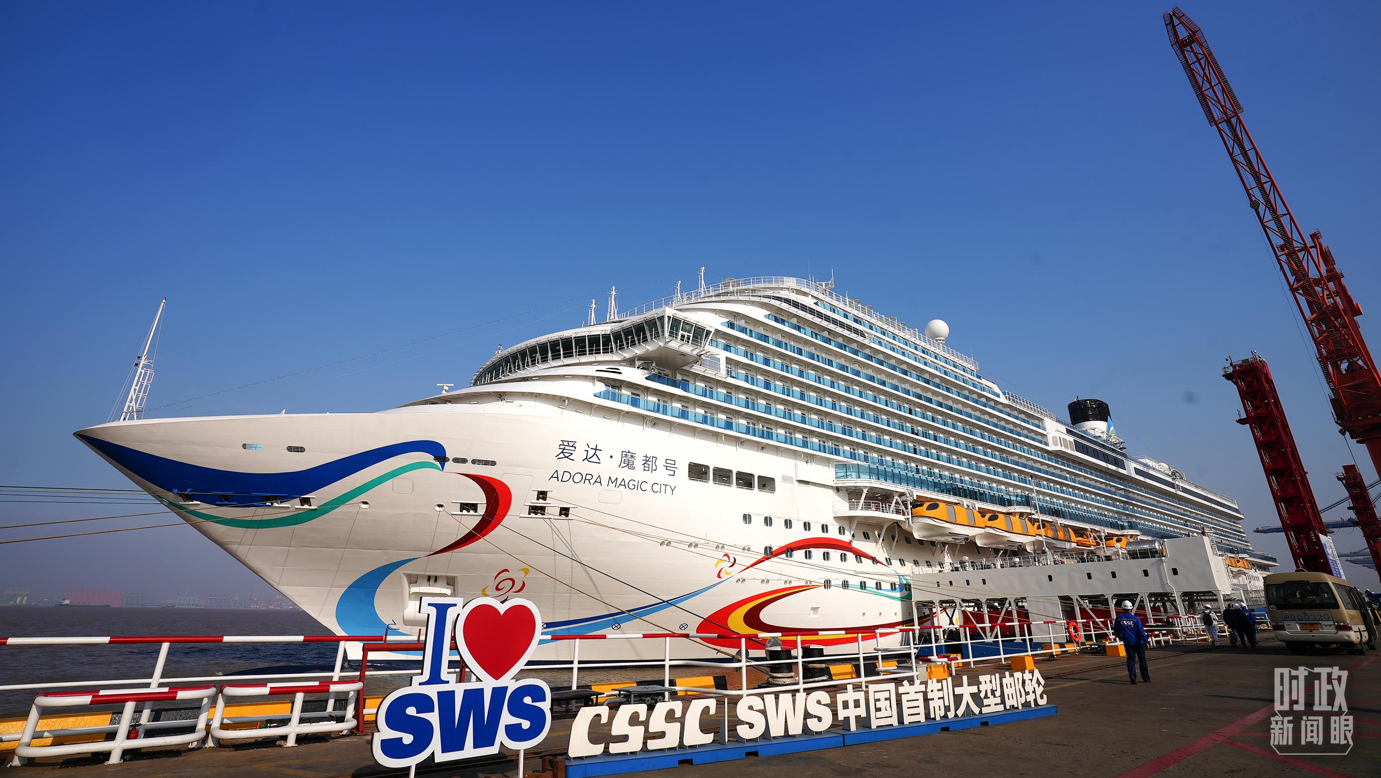 △中國(guó)首制大型游輪——愛(ài)達(dá)·魔都號(hào)。(總臺(tái)央視記者劉琦拍攝)