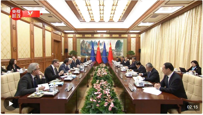 歐盟委員會主席馮德萊恩說:“很榮幸再次見到您,這是我今年第二次訪問中國。我們高度重視與中國的關(guān)系。中國是歐盟最重要的貿(mào)易伙伴。歐中雙方日均貿(mào)易額高達(dá)近23億歐元,在彼此的投資和經(jīng)濟(jì)發(fā)展中都具有重要的作用。作為世界兩大力量,歐盟和中國肩負(fù)著全球責(zé)任。”
