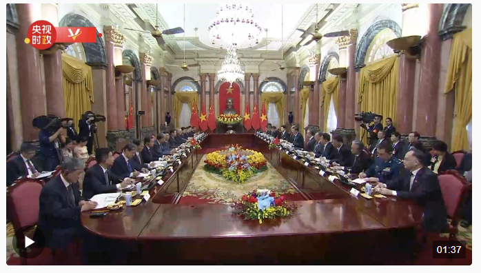 習(xí)近平指出,這是我擔(dān)任中共中央總書記、國家主席以來第三次對越南進(jìn)行國事訪問,是對去年10月阮富仲總書記訪華的回訪,也是今年我對外訪問的收官之旅,充分表明中越關(guān)系在中國外交布局特別是周邊外交中的特殊地位。