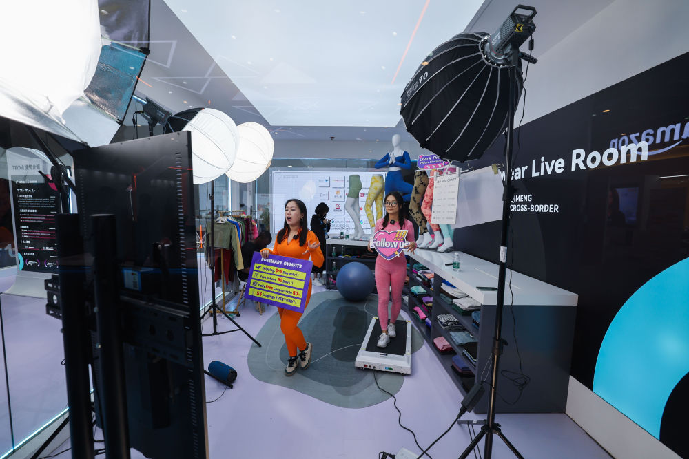 2023年11月23日,在浙江杭州舉行的第二屆全球數(shù)字貿(mào)易博覽會(huì)絲路電商館,跨境電商進(jìn)行直播銷售。新華社記者 徐昱 攝