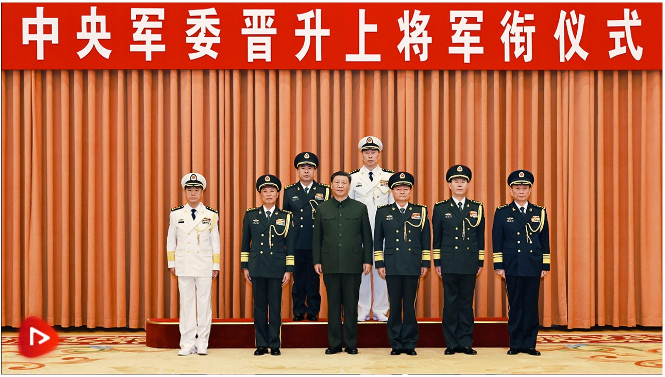 中央軍委晉升上將軍銜儀式25日在北京八一大樓舉行。中央軍委主席習(xí)近平出席晉銜儀式。