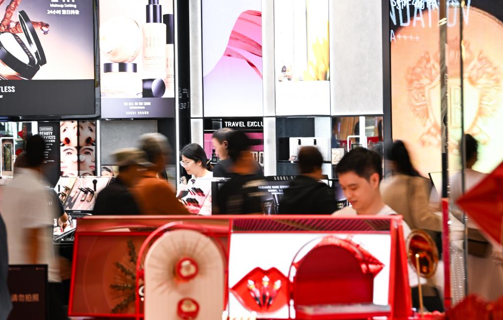 2023年10月28日,消費(fèi)者在位于海南省海口市的??趪H免稅城內(nèi)購物。新華社記者楊冠宇 攝