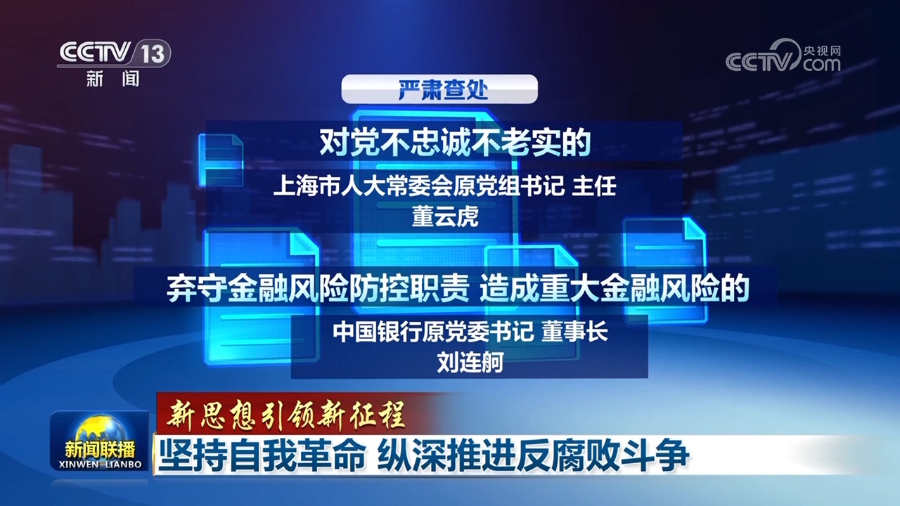 央視網(wǎng)消息(新聞聯(lián)播):腐敗是危害黨的生命力和戰(zhàn)斗力的最大毒瘤,反腐敗是最徹底的自我革命。習(xí)近平總書記在黨的二十大報告中,對新征程上堅決打贏反腐敗斗爭攻堅戰(zhàn)持久戰(zhàn)作出了全面部署。2023年,是全面貫徹黨的二十大精神的開局之年,以習(xí)近平同志為核心的黨中央發(fā)揚徹底的自我革命精神,持續(xù)發(fā)力、縱深推進(jìn)反腐敗斗爭,黨內(nèi)政治生態(tài)持續(xù)凈化。