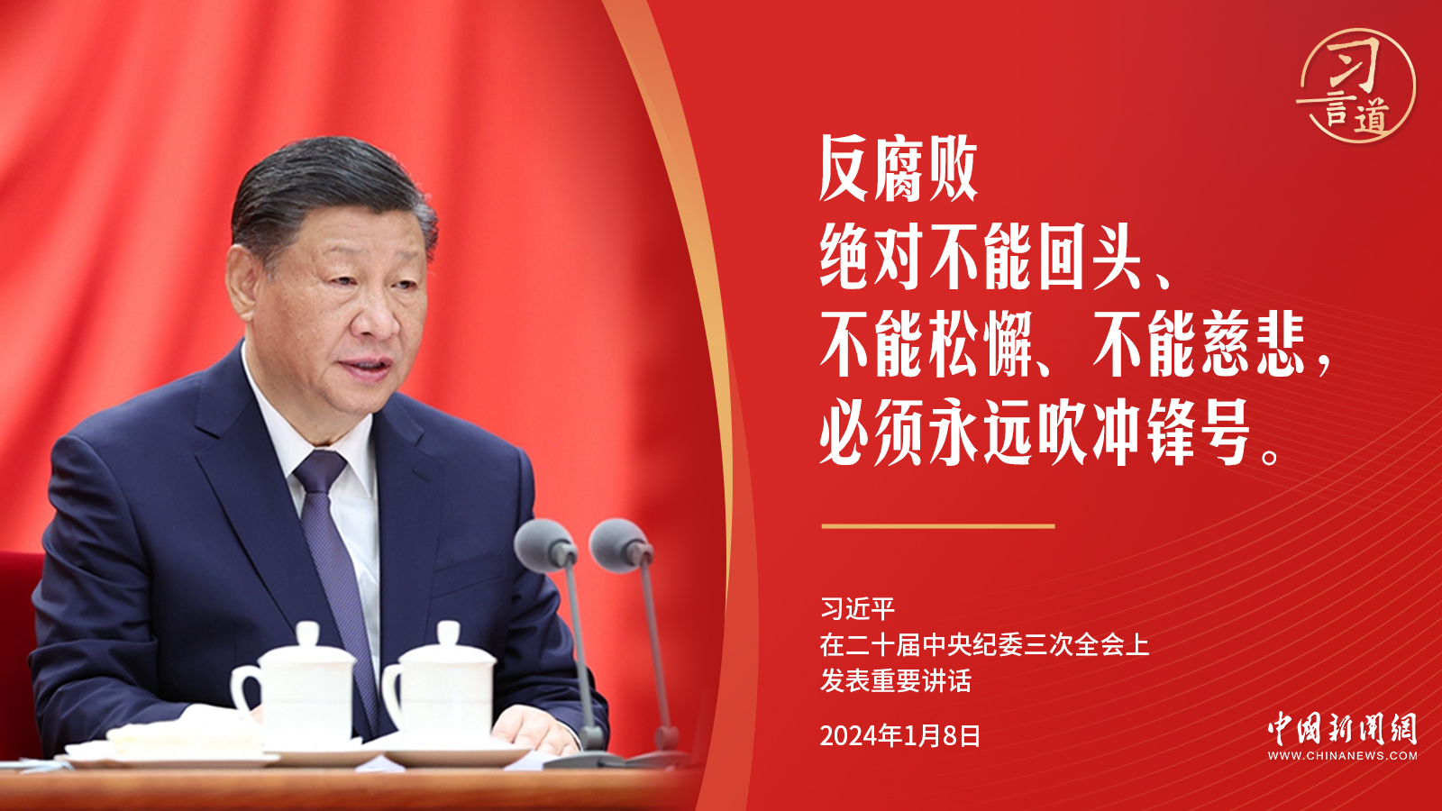 “反腐敗絕對不能回頭、不能松懈、不能慈悲,必須永遠吹沖鋒號。”