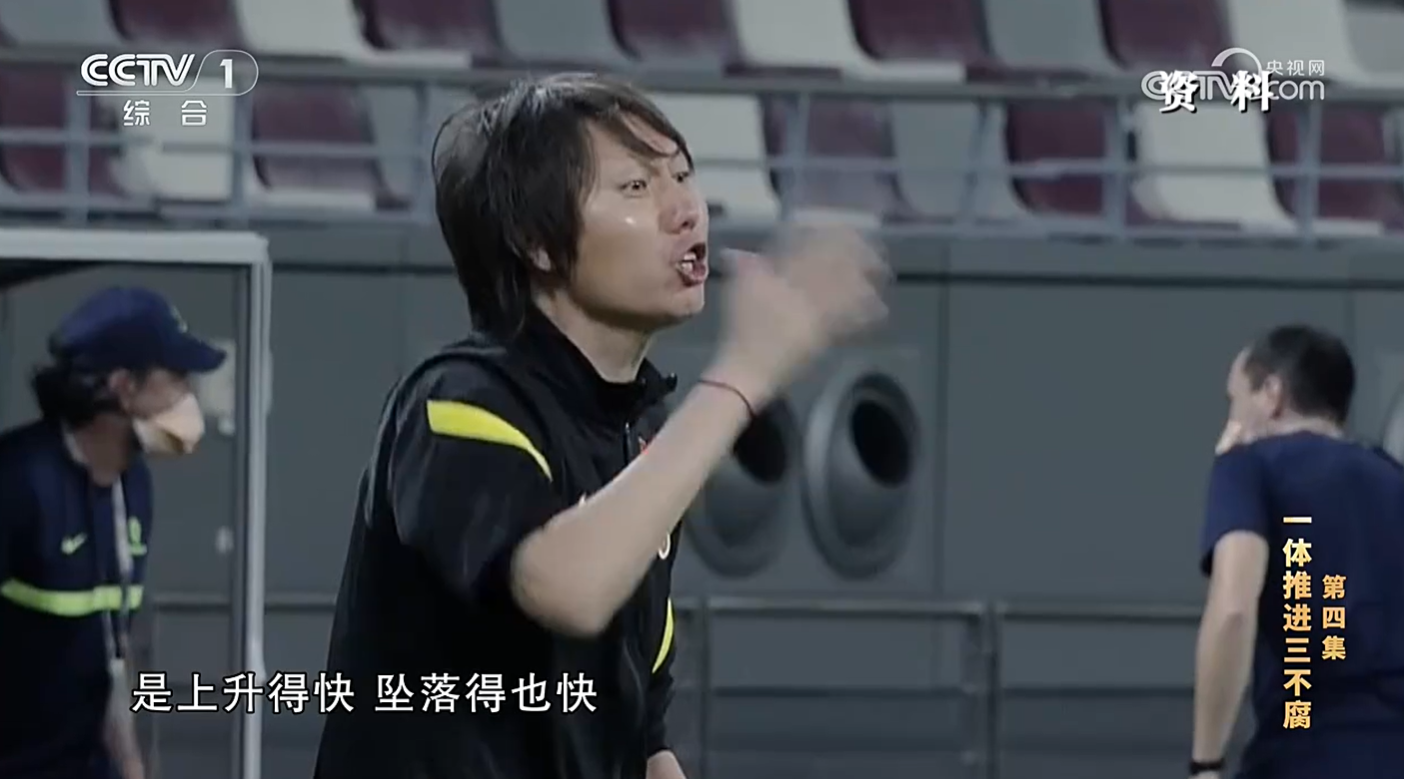 【解說詞】而之所以不正之風(fēng)在足壇不斷滋長蔓延,一個(gè)重要原因是,本該負(fù)起監(jiān)管職責(zé)的中國足協(xié),多年來有多名干部自身抵不住誘惑,被裹挾進(jìn)俱樂部的資本游戲,不僅對彌漫的歪風(fēng)邪氣放任不管,甚至主動(dòng)利用職權(quán)幫助俱樂部在保級、準(zhǔn)入、裁判判罰、賽程安排等多個(gè)方面謀取不正當(dāng)利益。