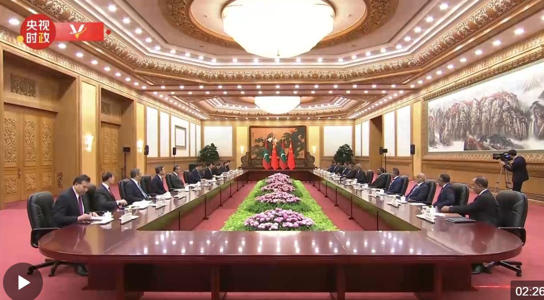 1月10日下午,國家主席習(xí)近平在人民大會堂同來華進(jìn)行國事訪問的馬爾代夫總統(tǒng)穆伊茲舉行會談。