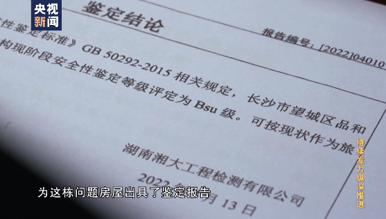 事故發(fā)生不久前,湖南湘大工程檢測公司還對該房屋4、5、6三層樓(家庭旅館),出具了虛假的房屋安全鑒定報告,稱樓房符合安全使用條件。