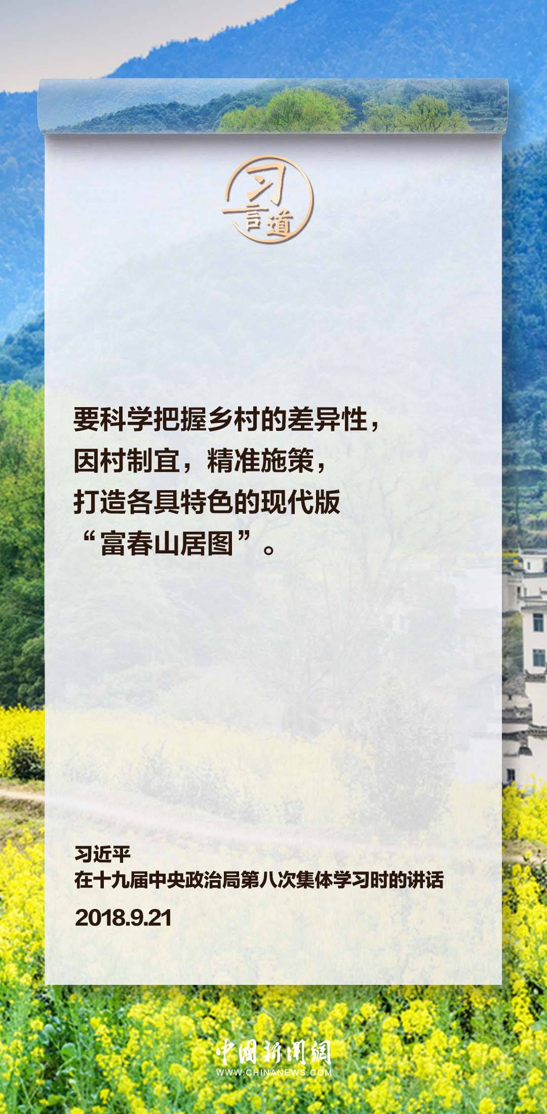 中國(guó)要美,農(nóng)村必須美。黨的十八大以來(lái),習(xí)近平總書記高度重視美麗鄉(xiāng)村建設(shè),作出系列重要部署,強(qiáng)調(diào)科學(xué)把握鄉(xiāng)村的差異性,因村制宜,精準(zhǔn)施策,打造各具特色的現(xiàn)代版“富春山居圖”。