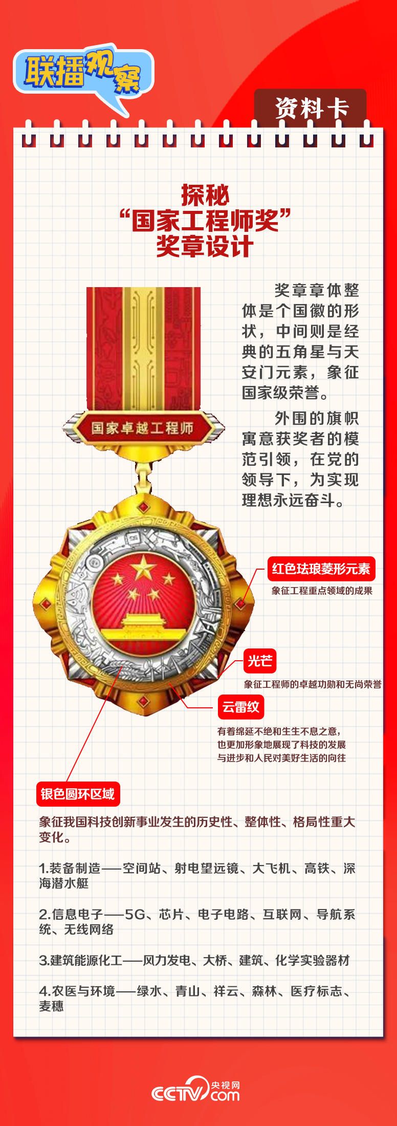 總書記對全國廣大工程技術人員提出哪些希望?獲獎者和獲獎團隊因何上榜?“國家工程師獎”獎章細節(jié)中藏著哪些奧秘?央視網(wǎng)《聯(lián)播觀察》帶您讀懂國家最高規(guī)格表彰工程技術領域先進典型背后的深意。