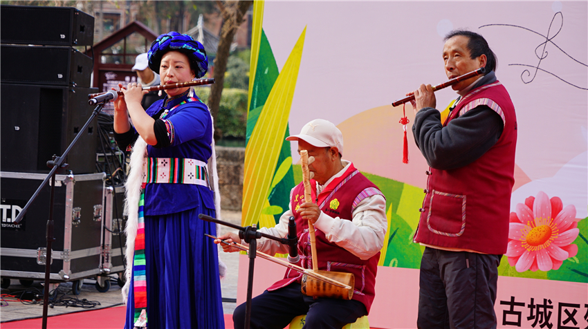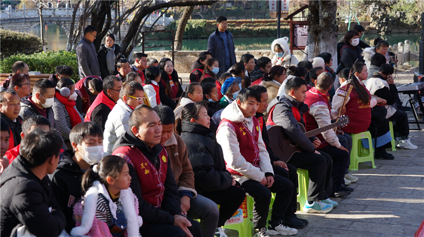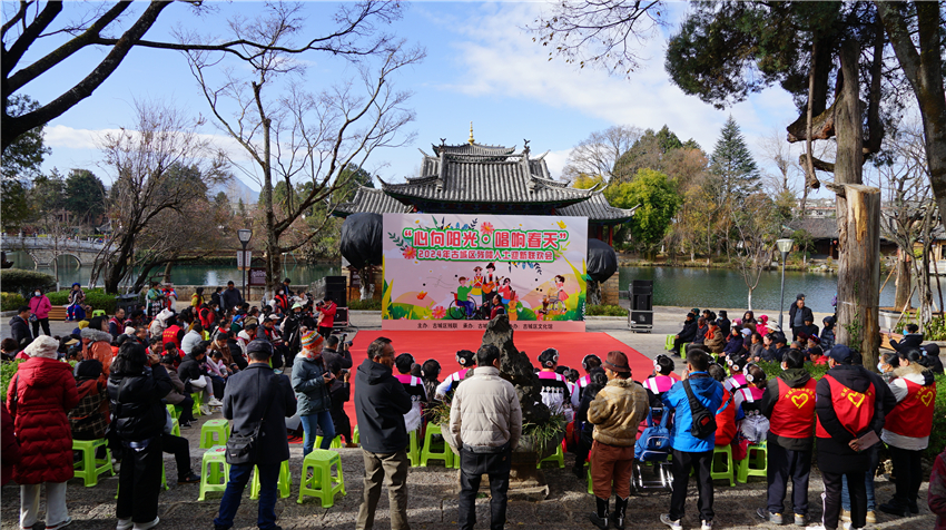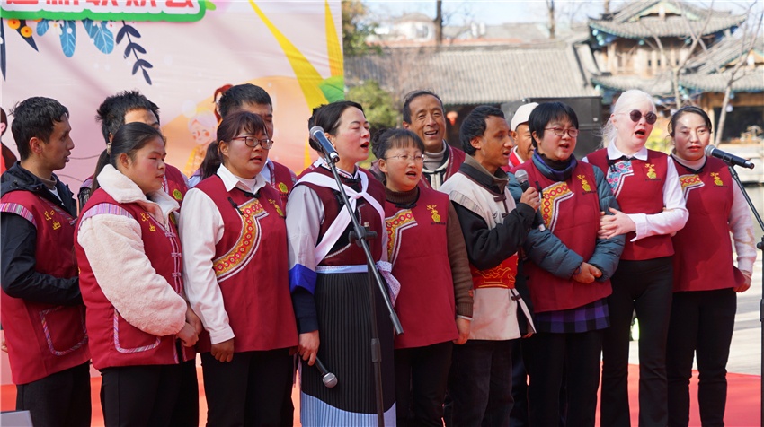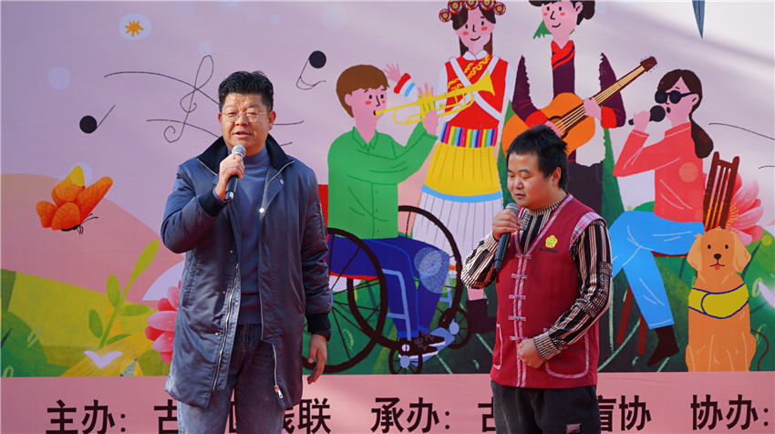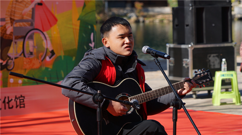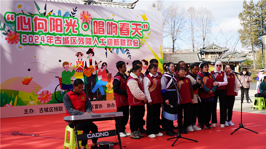 在大家的掌聲和歡呼聲中,視障人士徐國文率先上陣,和歌手肖煜光一同演唱了熱情洋溢的納西語歌曲《新年好》。接著,電子琴紅歌連奏、納西語小合唱《三月百花開》、健身氣功 《八段錦》表演、吉他彈唱《春風(fēng)十里》、盲人《花樣跳繩》、詩歌朗誦《沁園春·雪》等節(jié)目輪番上演。臺上,殘疾人朋友傾情演繹,展現(xiàn)樂觀向上、自強(qiáng)自立的精神風(fēng)貌;臺下,觀眾朋友高聲應(yīng)和,給予最真誠的回應(yīng)和鼓勵。