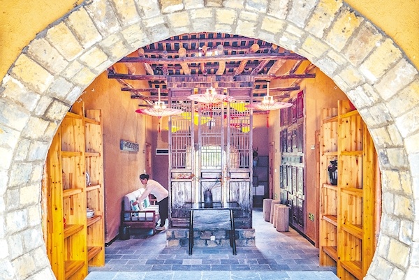 ▲ 麻城市黃土崗鎮(zhèn)桐枧沖村茯苓窩,村民在由老屋升級改造的共享民宿里忙碌