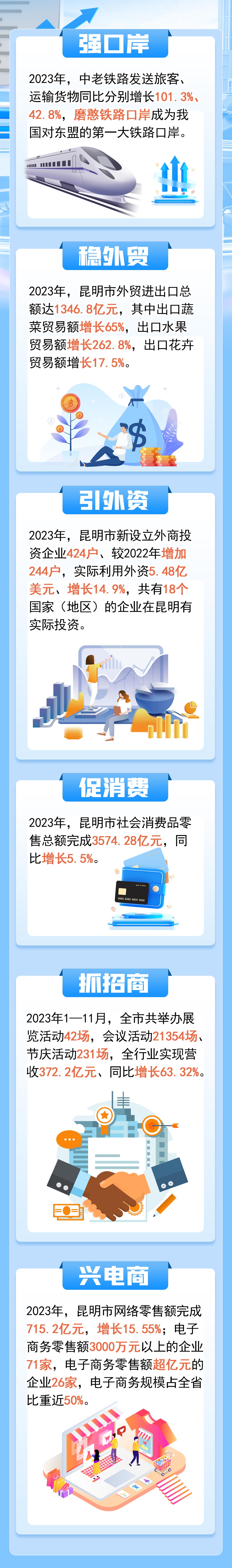 昆明入選中國外貿(mào)百強城市、3個案例獲評全面深化服務(wù)貿(mào)易創(chuàng)新發(fā)展試點“最佳實踐案例”、2個外貿(mào)轉(zhuǎn)型升級基地獲省級外貿(mào)轉(zhuǎn)型升級基地認定…… 2023年,昆明市出臺外貿(mào)穩(wěn)增長若干政策措施,從推動對外貿(mào)易提質(zhì)增效、提高產(chǎn)業(yè)外向度、支持外貿(mào)新業(yè)態(tài)發(fā)展等6個方面,幫助外貿(mào)企業(yè)紓困解難,持續(xù)提升全市貿(mào)易競爭力和貿(mào)易便利化水平,推動昆明對外貿(mào)易保持穩(wěn)定增長,促進對外貿(mào)易高質(zhì)量發(fā)展。
