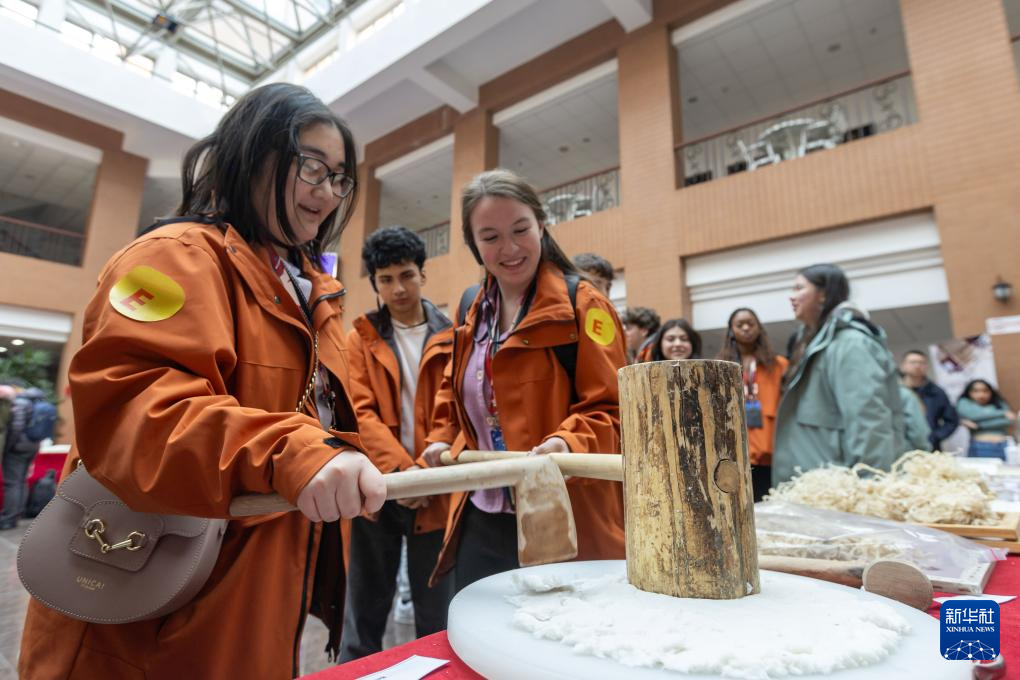 “我體驗(yàn)了造紙術(shù),用錘子打紙漿很有趣,我了解了中國(guó)古代造紙的過程?!瘪R斯卡廷高中一年級(jí)學(xué)生納塔莉·安妮·保爾森說。