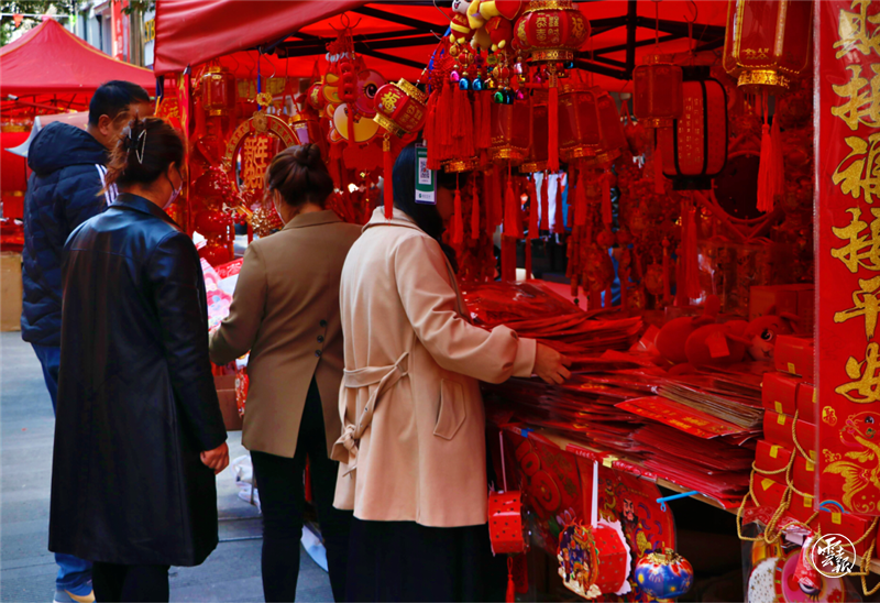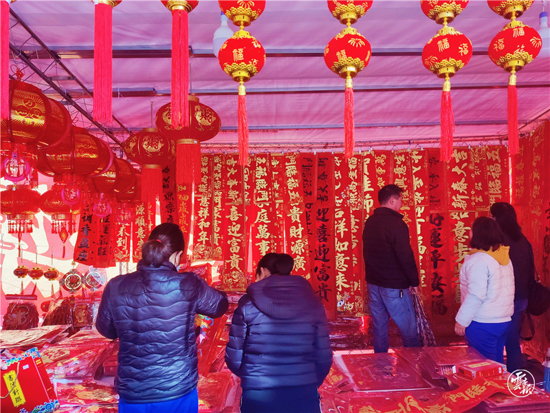 走在臨翔城區(qū)大街小巷,只見處處張燈結(jié)彩,年貨市場也熱鬧了起來,不同式樣的春聯(lián)、款式各異的福字、喜慶的金元寶、生肖掛件等年貨讓人眼花繚亂,市民們穿梭在各個攤點,精心挑選自己心儀的商品。