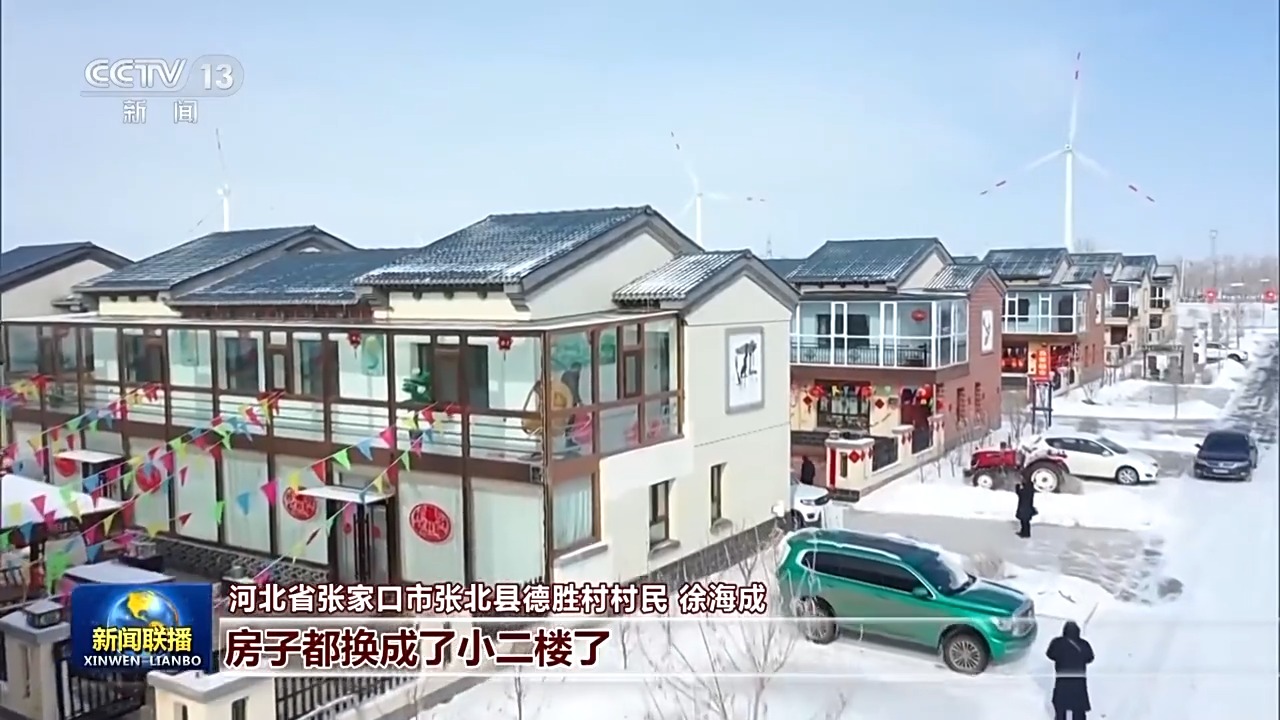 河北省張家口市張北縣德勝村村民 徐海成:2017年習(xí)近平總書記冒著嚴(yán)寒來(lái)我家,問(wèn)寒問(wèn)暖,真是暖心。我們村現(xiàn)在280個(gè)馬鈴薯微型薯大棚,并且有了光伏產(chǎn)業(yè),我買了小汽車,買了拖拉機(jī),房子都換成小二樓了,希望總書記再來(lái)我們村,看看我們村、我們家的新變化。